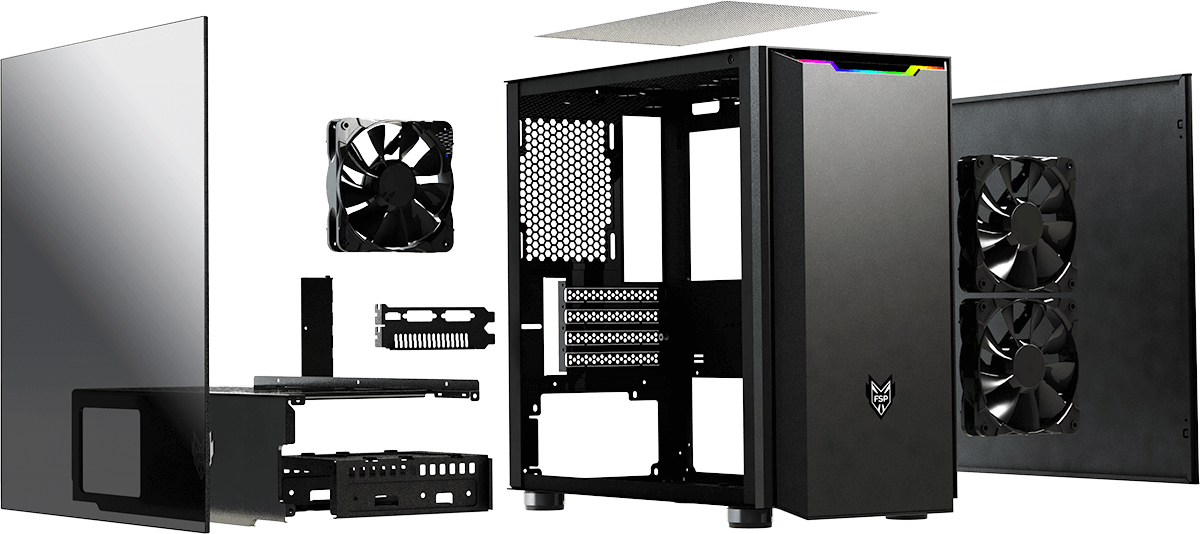 Obudowa CST310 jest zaprojektowana specjalnie dla graczy, a dzięki eleganckiemu wzornictwu oraz przezroczystemu panelowi bocznemu ze szkła hartowanego i paskowi świetlnemu RGB na panelu przednim, obudowa wyróżnia się na tle innych obudów w swojej klasie.