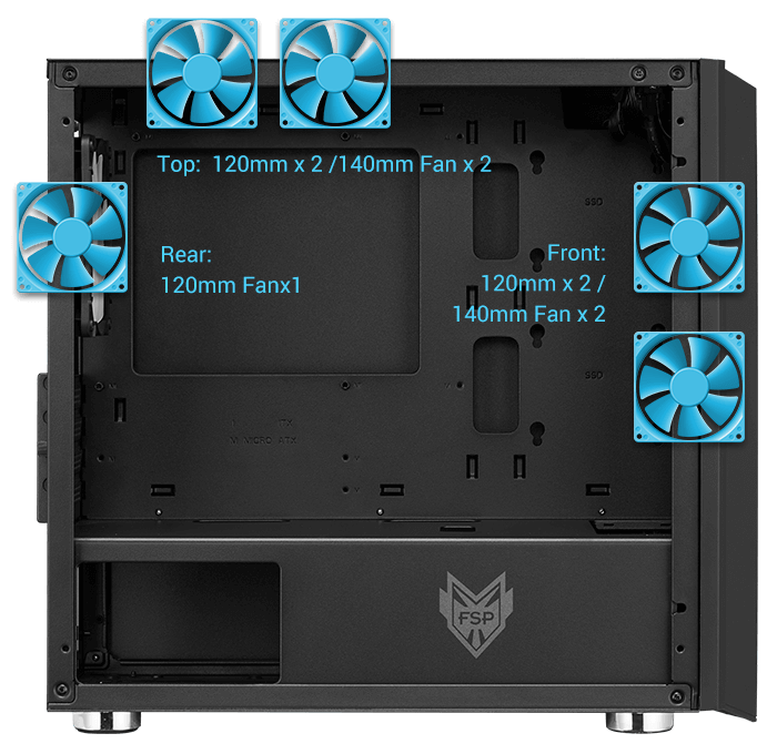 Obudowa CST310 jest standardowo wyposażona w 1 adresowalny wentylator RGB z tyłu, 2 wentylatory z przodu oraz wbudowany kontroler LED zapewniający Przyjemne podświetlenie.