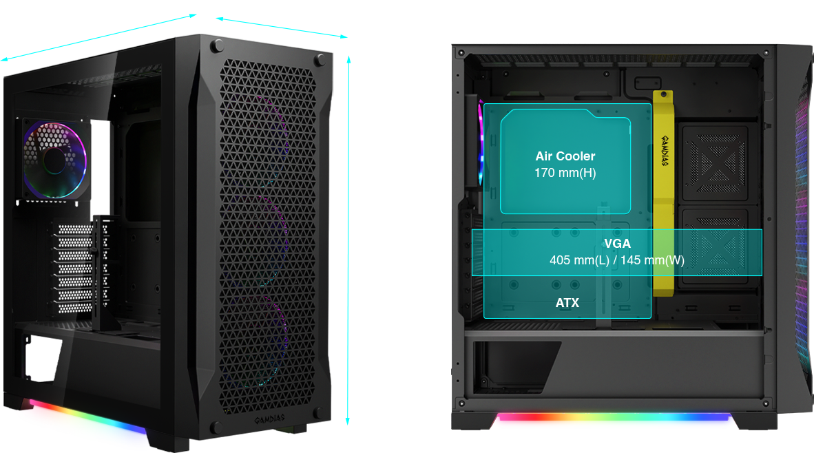 ATHENA P1 to obudowa typu mid-tower skupiająca się na przepływie powietrza, charakteryzująca się wyjątkową estetyką oświetlenia i wyjątkową funkcjonalnością. Obudowa posiada panel przedni z perforowanej siatki z czterema wbudowanymi wentylatorami ARGB zapewniającymi najwyższy poziom przepływu powietrza, paski podświetlające ARGB oraz przestronne wnętrze z zaawansowanym systemem zarządzania kablami, aby wydobyć to, co najlepsze z każdej konstrukcji.