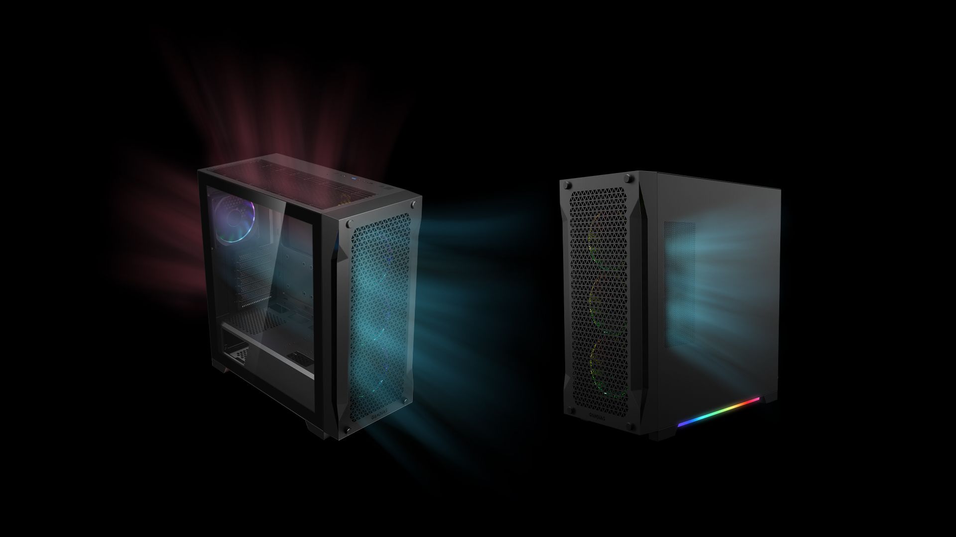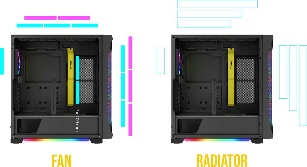 Obudowa jest wyposażona w cztery wentylatory o wysokiej wydajności, które zapewniają wysokie ciśnienie statyczne w celu zoptymalizowania przepływu powietrza. Wentylatory są wyposażone w w pełni adresowalne, niskoprofilowe oświetlenie ARGB, które zapewnia subtelny i modny wygląd.