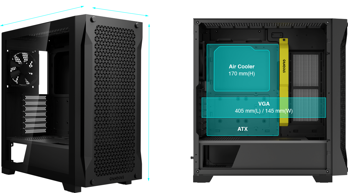 ATHENA P1 LITE obsługuje płyty główne ATX i karty VGA o długości do 405 mm i szerokości do 145 mm.