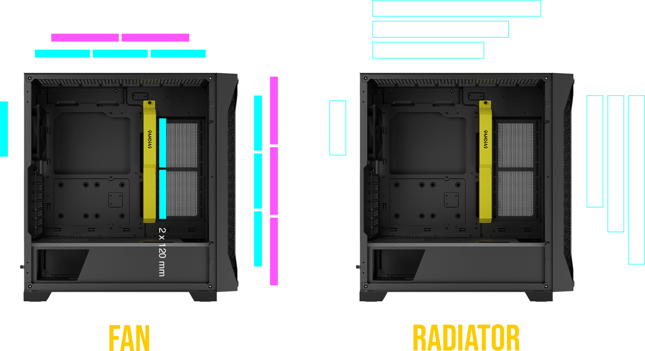 Obudowa obsługuje do 9 wentylatorów i maksymalnie 360 mm radiator z przodu i na górze.