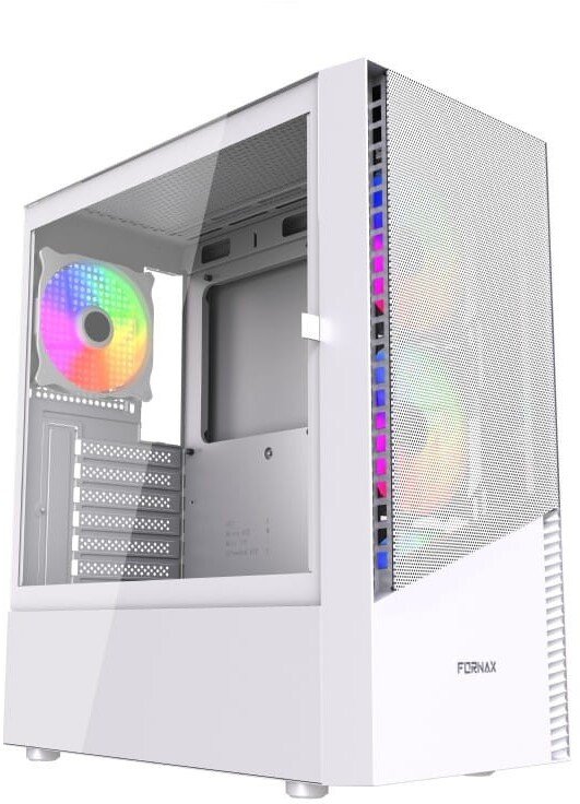 Gamingowa obudowa ATX Fornax 4300W, podświetlenie ARGB, biała Obudowa gamingowa Fornax 4300 biała Z 4 wentylatorami ARGB 2x USB 3.1, 1x USB 2.0 Magnetyczny panel boczny (zamontowany na zawiasie wykonany ze szkła) Brak zasilacza w zestawie Wymiary: 390 x 200 x 456 mmAkcesoria w zestawie: Pozostałe parametry: ...