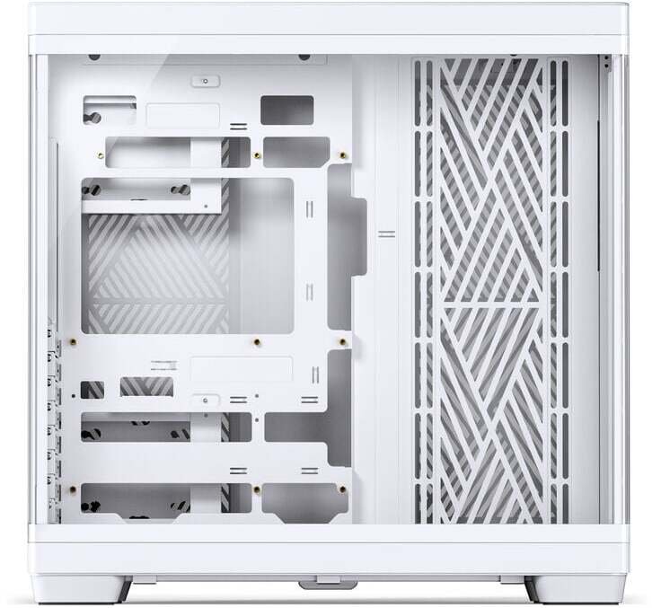 Obudowa TK-4 wyróżnia się minimalistycznym wyglądem, z uformowanymi panelami szklanymi po bokach i z przodu, co zapewnia doskonałą widoczność wnętrza. Symetryczny układ komponentów sprzyja porządkowi, a zastosowane materiały gwarantują stabilność i trwałość, co czyni ją idealnym wyborem do każdego wnętrza.