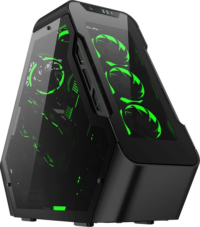 TR03-G, oparty na trójkątnym kształcie, przyciąga wzrok w każdym zestawie dzięki niezwykłemu i futurystycznemu designowi. Dzięki panelom bocznym i dwóm frontom z dużymi szklanymi panelami, potężny sprzęt do gier może być wystawiany w najlepszy możliwy sposób.