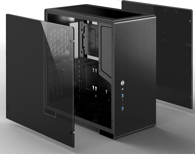 Aby zachować gładki przód U5S, Jonbo opiera się na efekcie komina dla tej obudowy: trzy 120-milimetrowe wentylatory można zainstalować na dole obudowy i dwa na pokrywie. Nogi obudowy podnoszą obudowę, dzięki czemu trzy opcjonalne wentylatory na podłodze mogą generować skuteczny przepływ powietrza. Na tylnej ścianie można zamontować kolejny 120-milimetrowy wentylator.