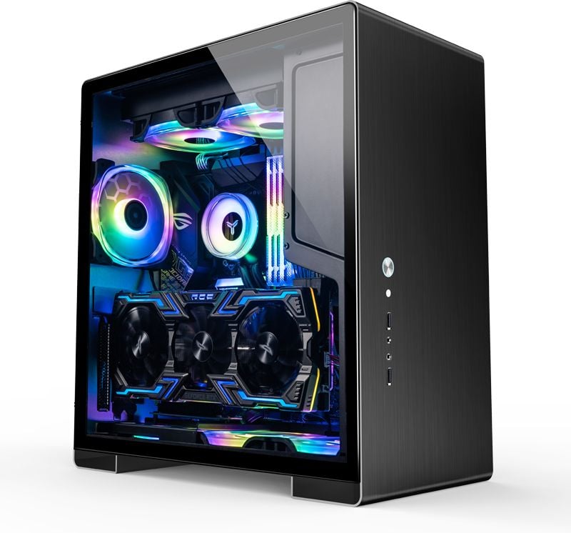 Elegancki Midi Tower dla płyt głównych do formatu ATX firmy Jonsbo oferuje dużo miejsca na wysokowydajny sprzęt, a dzięki trzem pionowym gniazdom PCI umiejętnie ustawia karty graficzne w szczególności. U5 S ma subtelną obudowę ze szczotkowanego aluminium i panel boczny z hartowanego szkła. Innowacyjnie zaprojektowane wnętrze oferuje ciekawe możliwości aranżacyjne i wykorzystuje efekt komina do optymalnego chłodzenia.