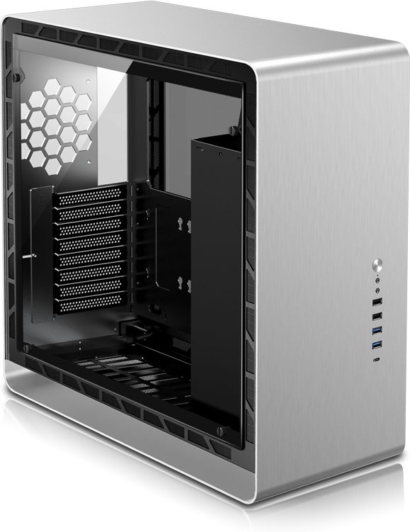 Szlachetny Midi Tower wykonany z aluminium i stali jest odpowiedni dla płyt głównych do formatu E-ATX (maks. 305 x 285 mm). UMX6 firmy Jonsbo opiera się na eleganckim wyglądzie z zaokrąglonymi krawędziami i korpusem ze szczotkowanego aluminium. Wewnątrz, obudowa może pomieścić potężny system do gier, a duży panel boczny wykonany ze szkła hartowanego pozwala na podgląd wbudowanego sprzętu.