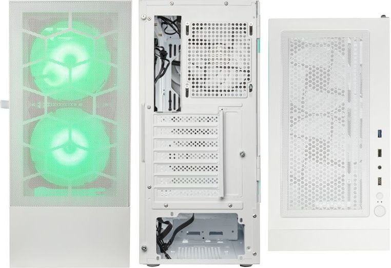 To jest model Mesh w czerni i bieli. Panel przedni ma konstrukcję siatkową, aby zapewnić duży przepływ powietrza. Aby zachować estetyczny wygląd, dedykowana osłona zasilacza jest wykonana z solidnych stalowych paneli. Podobnie jak w przypadku modelu czarno-białego, nadwozie i wnętrze są czarne, a osłona jest biała. W ten sposób tworzymy odważny efekt.