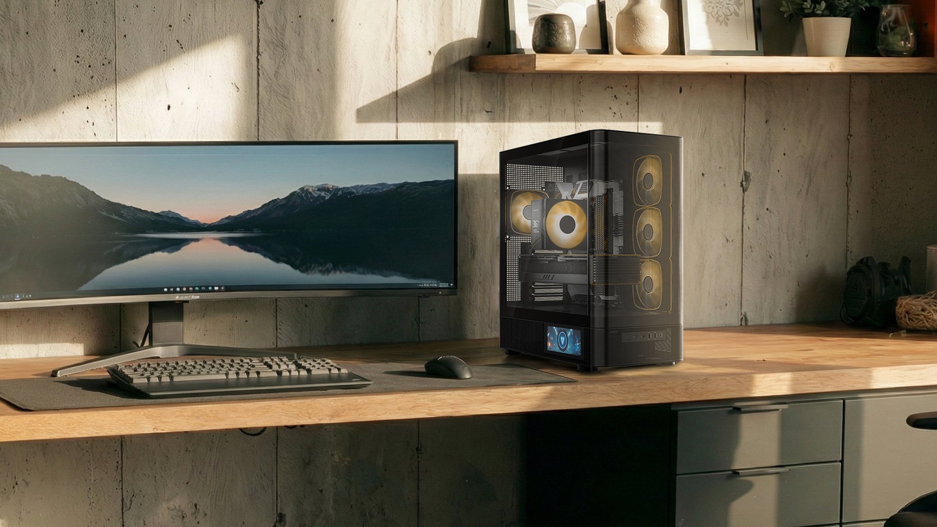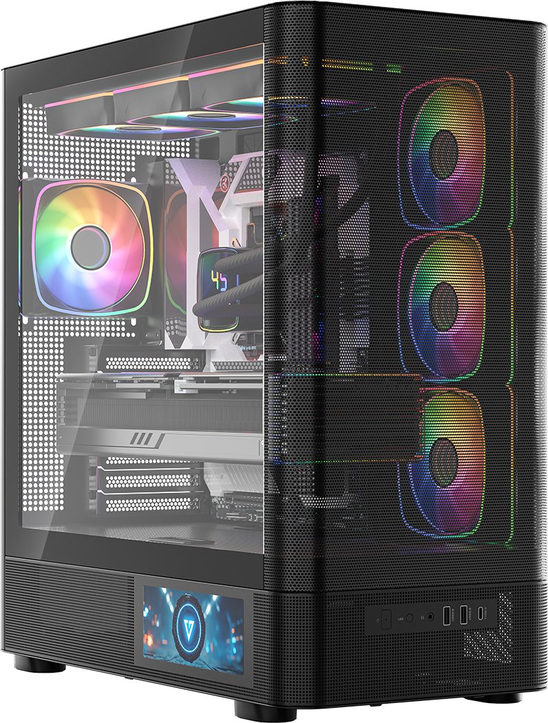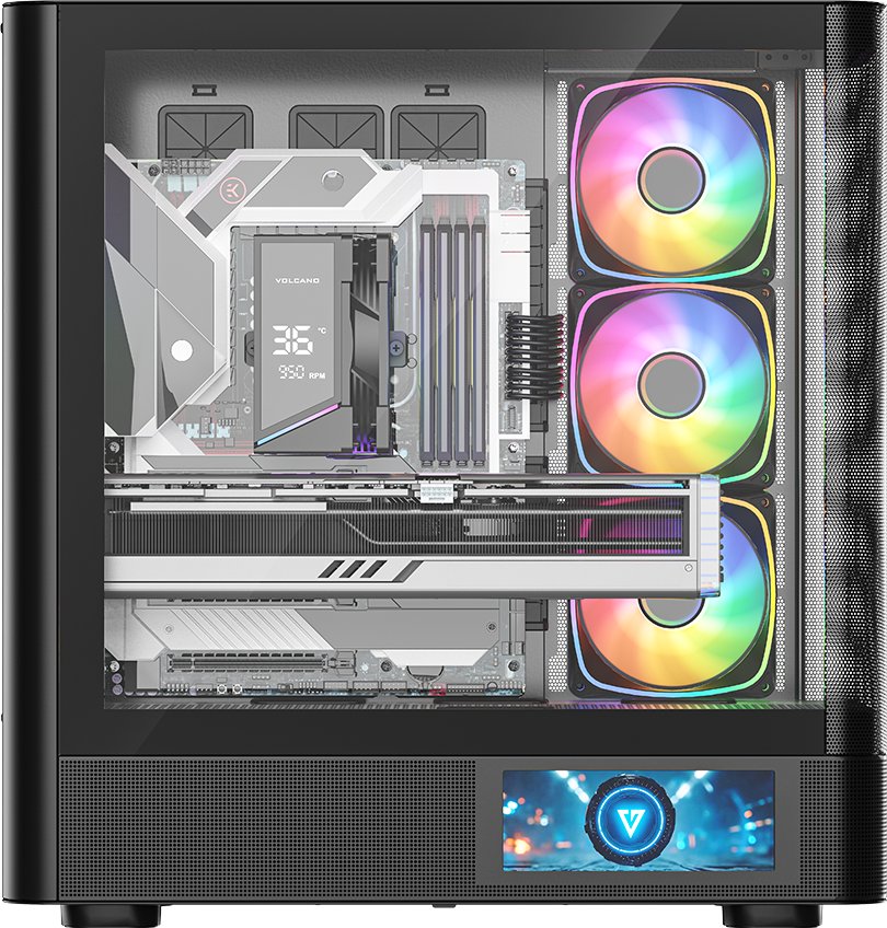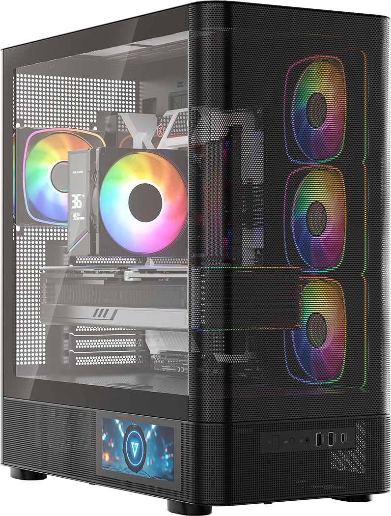 MODECOM Volcano AQ400 ARGB MIDI łączy stylowe, obłe kształty z nietuzinkowym wzornictwem i szczegółowym ekranem LCD, który odmieni charakter Twojego komputera i całego stanowiska.