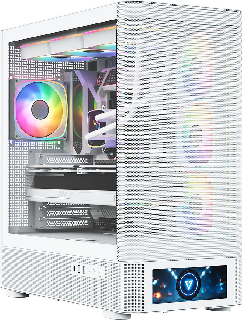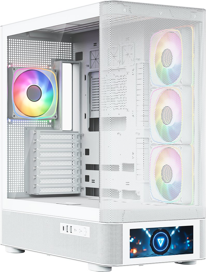 MODECOM Volcano AQ500 ARGB MIDI jest przedstawicielem serii obudów Volcano AQ charakteryzujących się efektownym wzornictwem obłych kształtów frontowego, (w tym przypadku perforowanego, metalowego panelu), możliwością montażu płyt głównych z odwróconymi złączami, czterema wentylatorami 120 mm ARGB w standardzie z kontrolerem podświetlenia ARGB i wsparciem dla chłodnic wodnych do 420 mm oraz licznymi perforacjami na panelach bocznych w celu zapewnienia chłodnej pracy komputera. Cechą charakterystyczną wersji AQ500 jest ekran LCD wbudowany na froncie obudowy, na którym można wyświetlić zdjęcie, film w formacie mp4 lub monitorować temperaturę i obciążenie pracy procesora, karty graficznej czy użycie pamięci RAM. Całość zalet uzupełniają dwa porty USB 3.0 oraz jeden USB-C (USB 3.2 Gen 2). To obudowa stworzona, by cieszyć się widokiem podzespołów i spersonalizować komputer pod siebie.