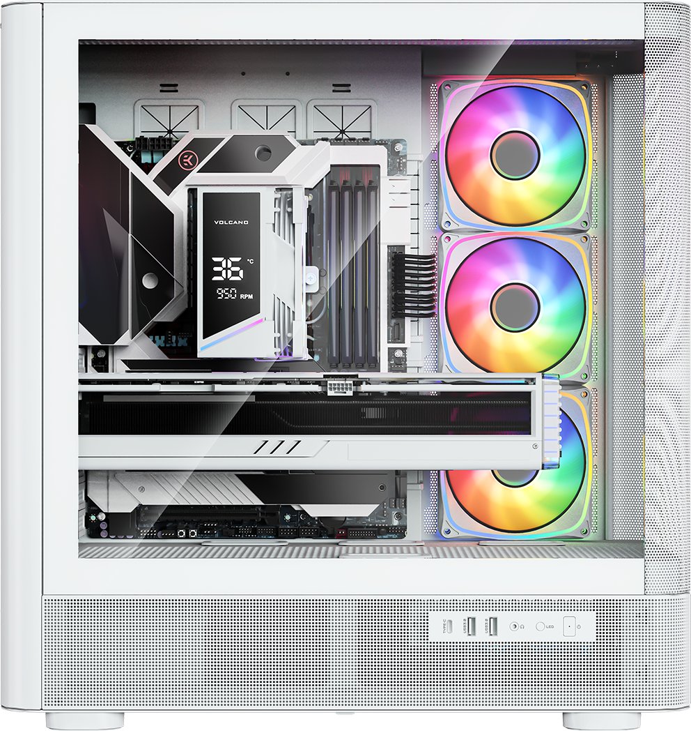 Masz dość już tych sztampowych jakby „ciosanych” siekierą kształtów? Wzornictwo serii obudów Volcano AQ oparliśmy na obłych kształtach. Projekt wentylatorów przywodzi na myśl dzieła epoki surrealizmu, co w połączeniu z całością konstrukcji stanowi intrygujące, ciekawe i odważne podejście do budowy komputera. To jest obudowa, która zdaje się przemawiać całą sobą.