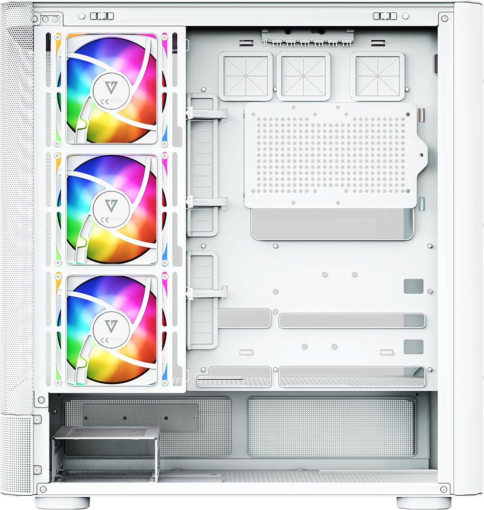 MODECOM Volcano AQ500 ma fabrycznie zainstalowane cztery wentylatory 120 mm ARGB. Trzy boczne wentylatory 120 mm ARGB typu reversed z odwróconymi łopatkami wtłaczają niezbędny chłód do środka, skutecznie schładzając komponenty. Natomiast czwarty wentylator 120 mm ARGB zamontowany z tyłu wyciąga gorące powietrze na zewnątrz. To optymalne rozwiązanie w zakresie chłodzenia komputera, które zapewnia świetną kulturę jego pracy oraz niskie temperatury. Obudowa posiada kontroler wentylatorów ARGB, za pomocą którego możesz sterować podświetleniem z pełnej palety barw kolorów RGB. Kontroler obsłuży do 6 wentylatorów. A jeśli nie jesteś fanem „świecidełek”, wystarczy po prostu wyłączyć podświetlenie dedykowanym przyciskiem na panelu sterowania.