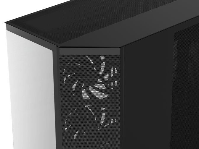 - Obsługa wentylatorów: do 10 wentylatorów (3 x 120 mm / 3 x 140 mm z przodu, 3 x 120 mm / 3 x 140 mm na górze, 3 x 120 mm / 3 x 140 mm na dole, 1 x 120 mm z tyłu)