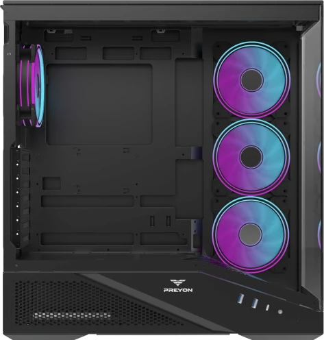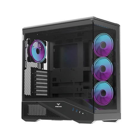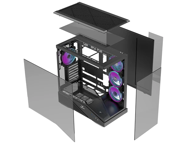 Największym wyróżnikiem obudowy jest konstrukcja Seaview, czyli panoramiczny widok na wnętrze komputera. Przedni oraz boczny panel wykonano z hartowanego szkła, co nadaje całości nowoczesny, minimalistyczny charakter i pozwala wyeksponować komponenty oraz podświetlenie ARGB.