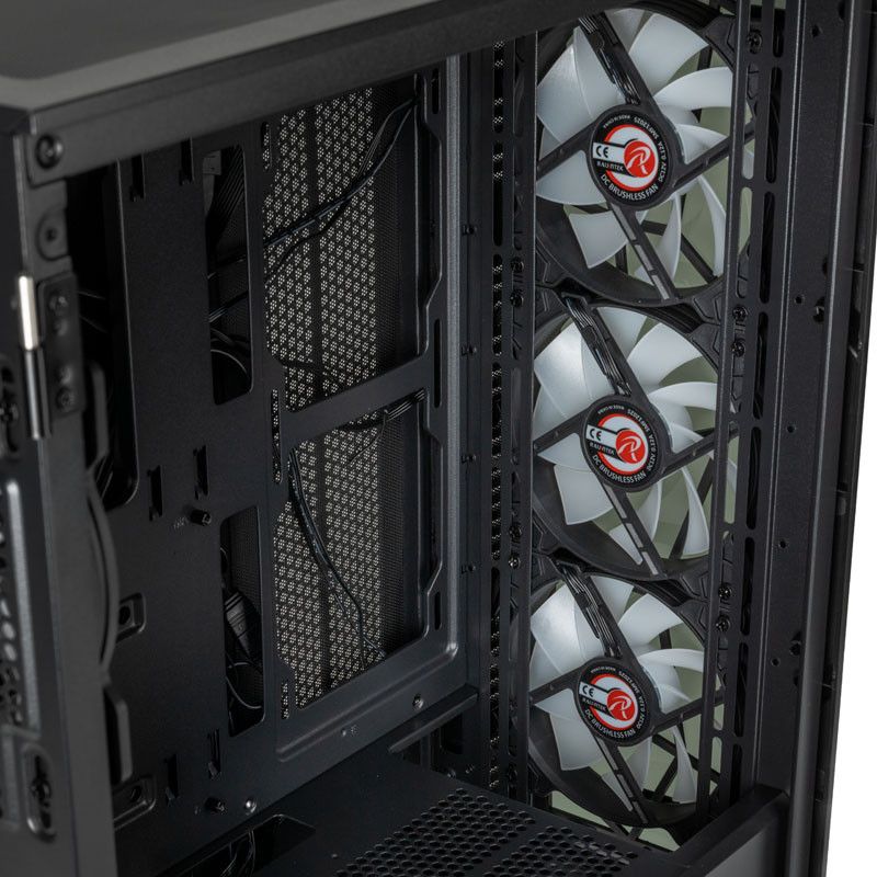 Opracowując PONOS Ultra, Raijintek miał na myśli chłodzenie ciepłych komponentów. Obudowa jest otwarta i zaprojektowana z myślą o bezproblemowym przepływie powietrza. Trzy zintegrowane wentylatory ARGB 120 mm z przodu i jeden dodatkowy wentylator 120 mm ARGB zapewniają mnóstwo świeżego powietrza dla Twojego sprzętu.