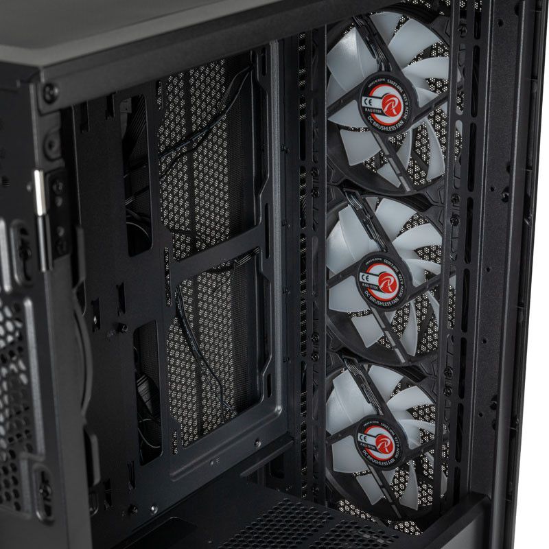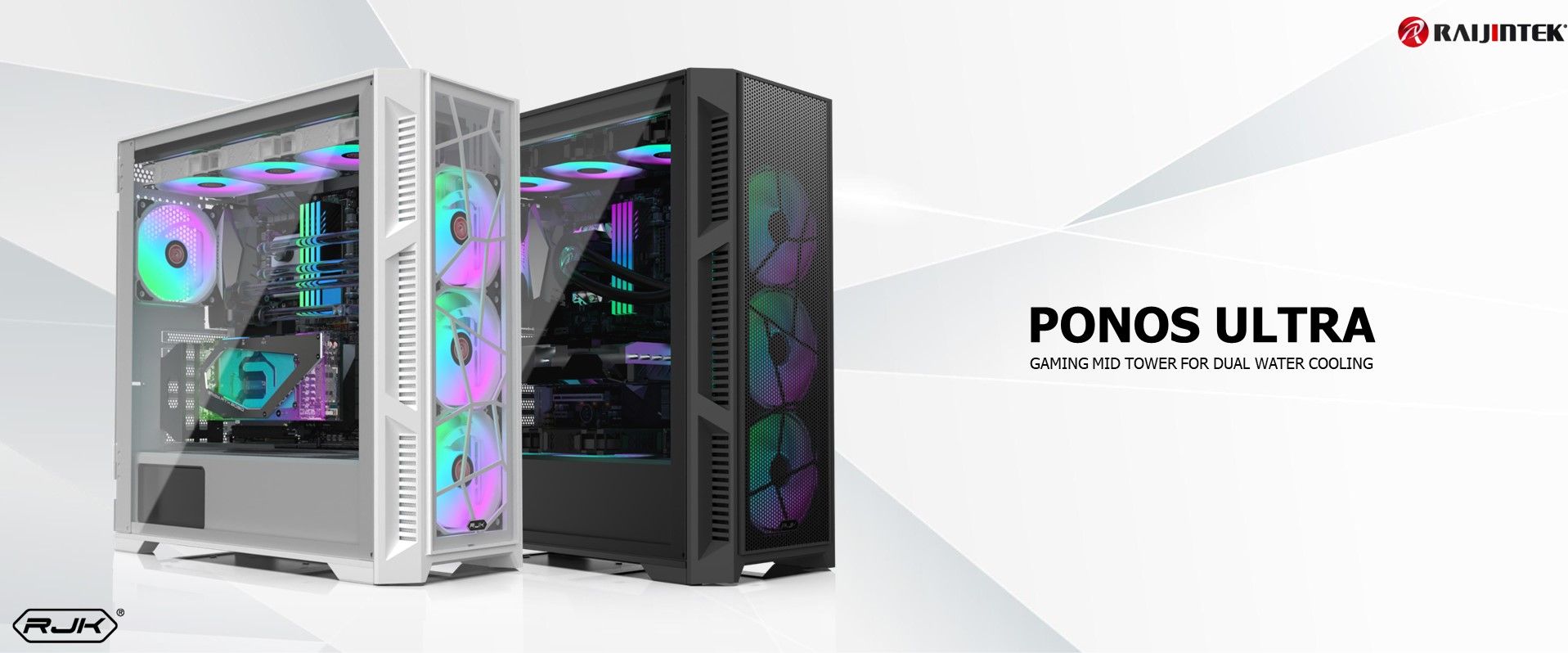 Opracowując PONOS Ultra Mesh, Raijintek miał na myśli chłodzenie ciepłych komponentów . Obudowa jest otwarta i zaprojektowana z myślą o bezproblemowym przepływie powietrza. Przód wykonany jest z siateczki, dzięki czemu zapewnia dobry przepływ powietrza. Trzy zintegrowane wentylatory ARGB 120 mm z przodu i jeden dodatkowy wentylator 120 mm ARGB zapewniają mnóstwo świeżego powietrza dla Twojego sprzętu.