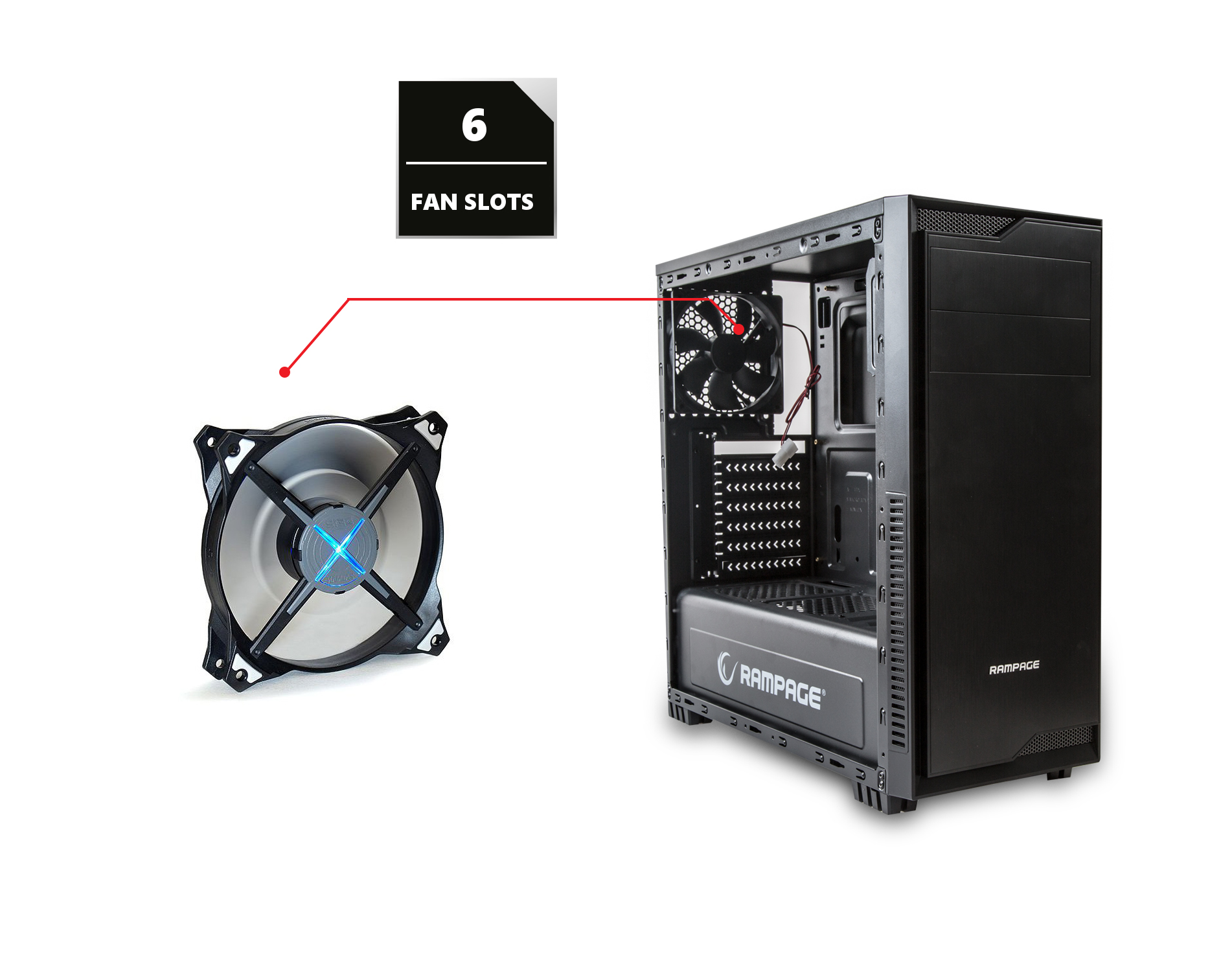 Nie zapomnieliśmy o wydajnym chłodzeniu, obudowa została wyposażona w aż 6 gniazd na wentylatory: