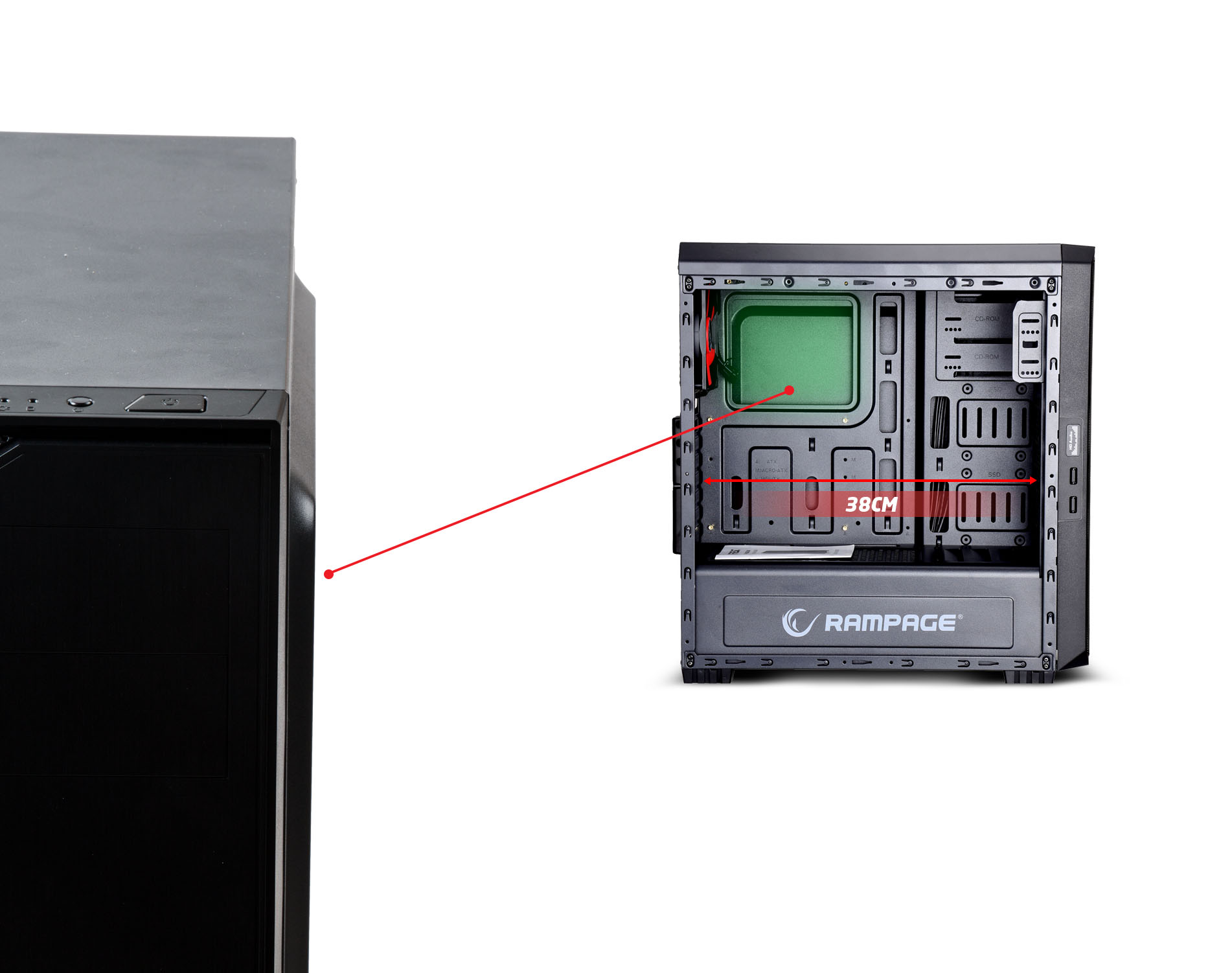 Efektowną cechą Rampage Razor jest panel boczny z oknem eksponującym komponenty zamontowane w środku.