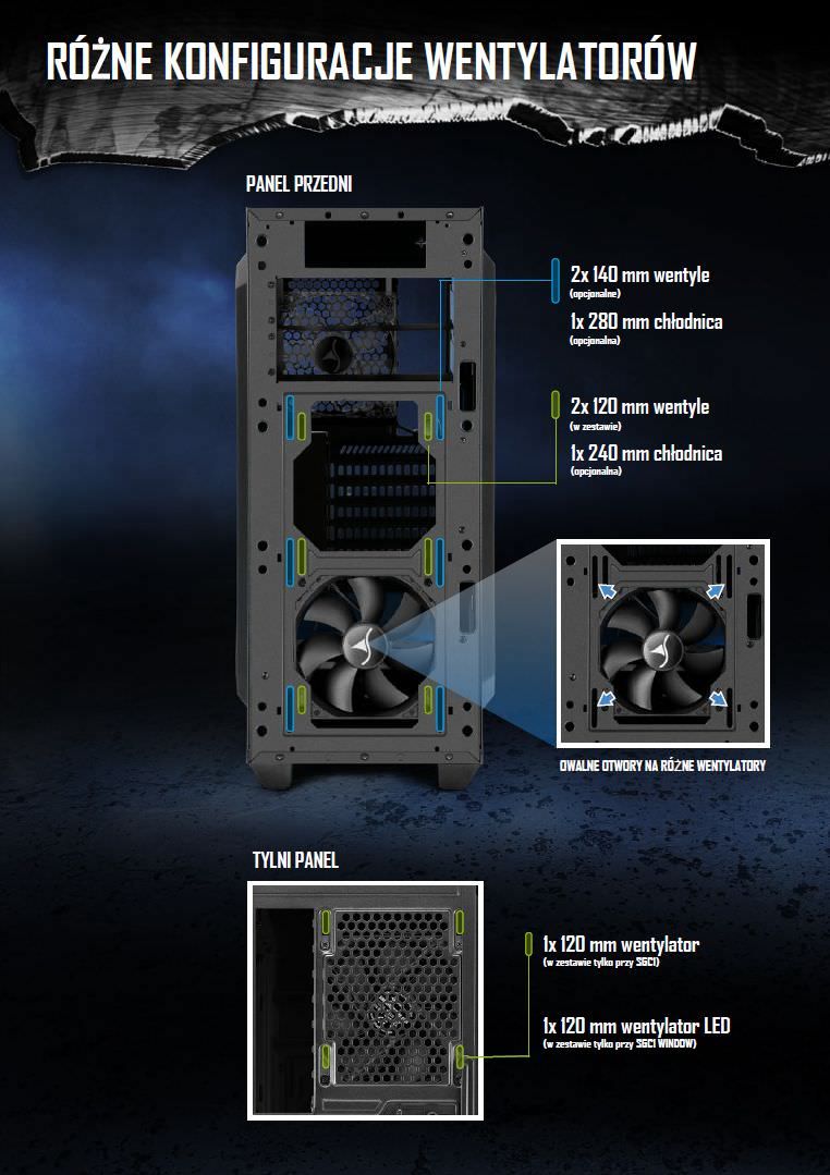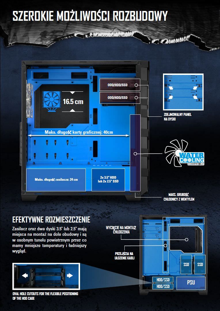 Fani chłodzenie wodnego mogą zamontować na przodzie chłodnicę 280mm, a na górze 360mm, co pozwoli schłodzić nawet najbardziej wymagającą kartę graficzną oraz procesor.