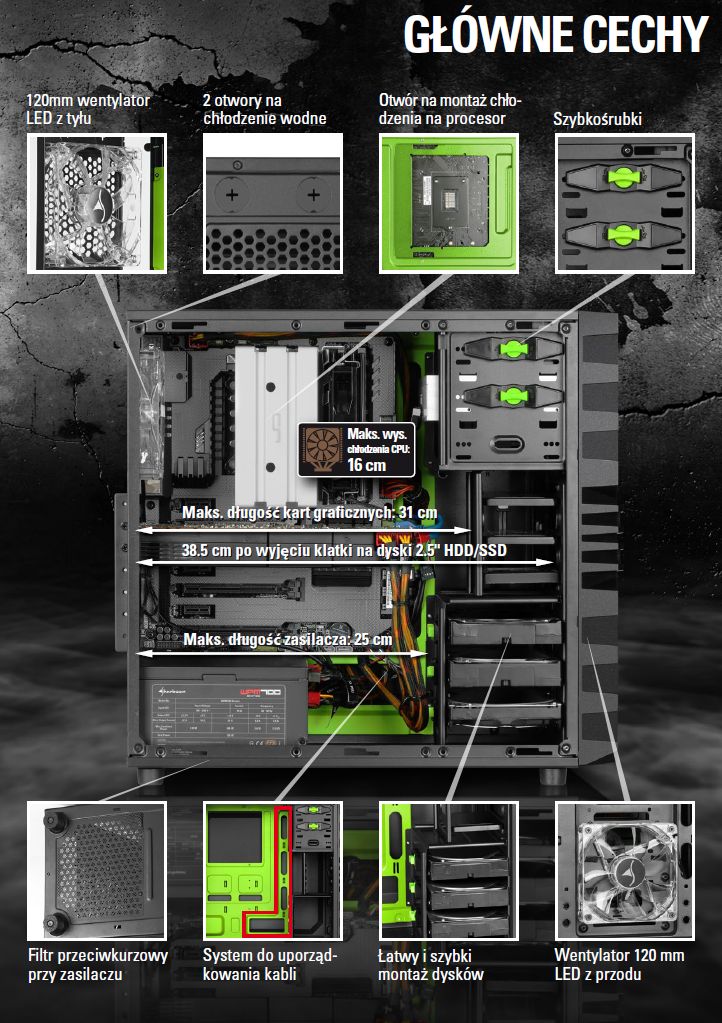 Obudowa komputerowa, która pozwoli na instalację układu chłodzenia CPU o wysokości do 16 cm sprawdzi się idealnie przy budowie konfiguracji komputerowej o wielu zastosowaniach. Dzięki takiej konstrukcji będziesz mógł dobrać kompatybilne modele wentylatorów o różnych parametrach. Wśród nich znajdziesz zarówno proste układy przeznaczone do chłodzenia urządzeń biurowych, jak i te bardziej zaawansowane, które znajdziemy w jednostkach dla miłośników wirtualnej rozrywki, czy użytkowników profesjonalnych.