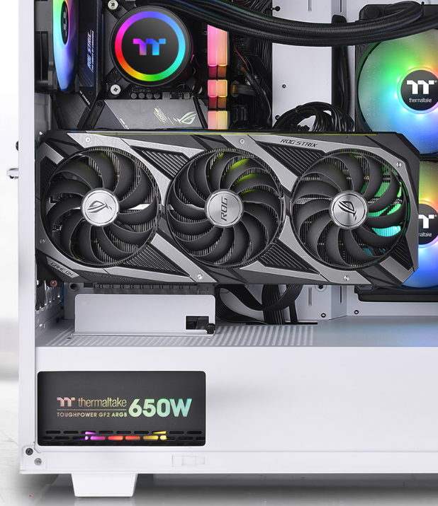 Wbudowana pokrywa zasilacza ma ogólnie wentylowaną konstrukcję. Optymalizacja przepływu powietrza, a także ukrycie tych nieestetycznych kabli. Dołączony wspornik karty graficznej typu riser nie tylko zapobiega zwisaniu karty graficznej, ale także pomaga zmniejszyć wagę gniazd PCI-E na płycie głównej.
