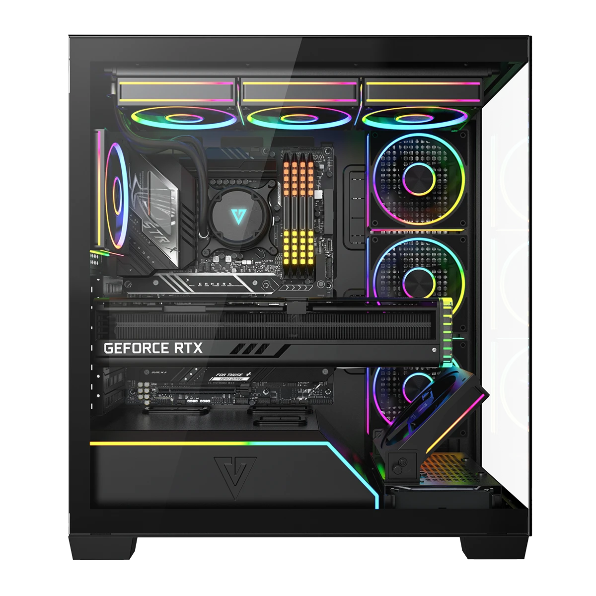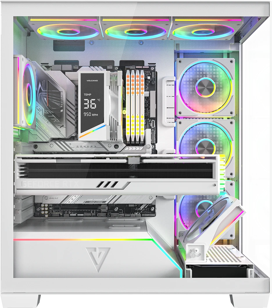 Volcano Stellar Plus oferuje rzadko spotykane rozwiązanie, które poprawia wydajność i chłodzenie jednego z najbardziej gorących elementów komputera, czyli karty graficznej. Specjalna, regulowana ramka na wentylator pozwala skierować strumień zimnego powietrza dokładnie tam, gdzie jest najbardziej potrzebny. Dzięki temu karta graficzna pracuje wydajniej i ciszej, nawet podczas wielogodzinnych sesji gamingowych, a Ty możesz cieszyć się płynną rozgrywką i spokojem, nie martwiąc się o temperatury podzespołów.