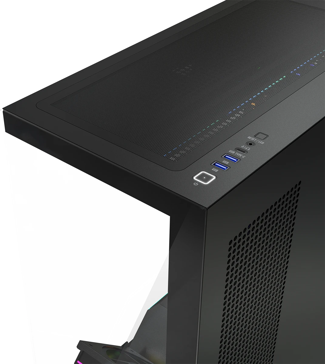 Na górnym panelu MODECOM Volcano Stellar Plus znajdziesz wygodne i szybkie złącza do podłączania urządzeń zewnętrznych. Dostępne są dwa porty USB 3.0 oraz jedno USB-C, zapewniające łatwy dostęp do pamięci przenośnych, kontrolerów czy smartfonów. W gnieździe typu combo podłączysz zarówno mikrofon, jak i słuchawki, a przycisk do zmiany podświetlenia LED wentylatorów pozwala szybko dostosować wygląd wnętrza obudowy do swojego stylu. Dzięki temu panel I/O jest zarówno funkcjonalny, jak i intuicyjny – wszystko, czego potrzebujesz, masz zawsze pod ręką.