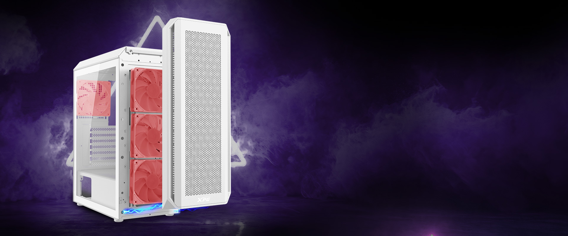 W obudowie XPG VALOR AIR PLUS można zainstalować maks. 6 wentylatorów 120 mm. Niektóre modele są wyposażone w 4 wstępnie zainstalowane wentylatory ARGB, z których 3 znajdują się z przodu, a 1 z tyłu obudowy. Podświetlenie można dostosować przy użyciu obsługiwanego oprogramowania płyty głównej lub oprogramowania do zarządzania ekosystemem XPG PRIME. Łatwo zdejmowany magnetyczny panel przedni umożliwia także wyczyszczenie zamocowanego filtra przeciwpyłowego w celu utrzymania optymalnego przepływu powietrza przy jednoczesnej ochronie obudowy przed kurzem.