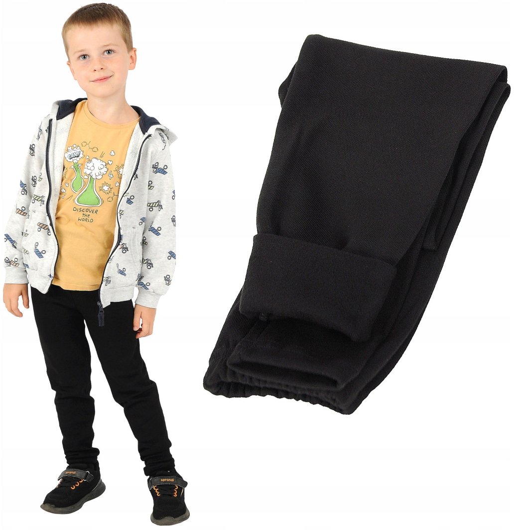 Ocieplane elastyczne Legginsy chłopięce Bawełniane Spodnie Czarne 140