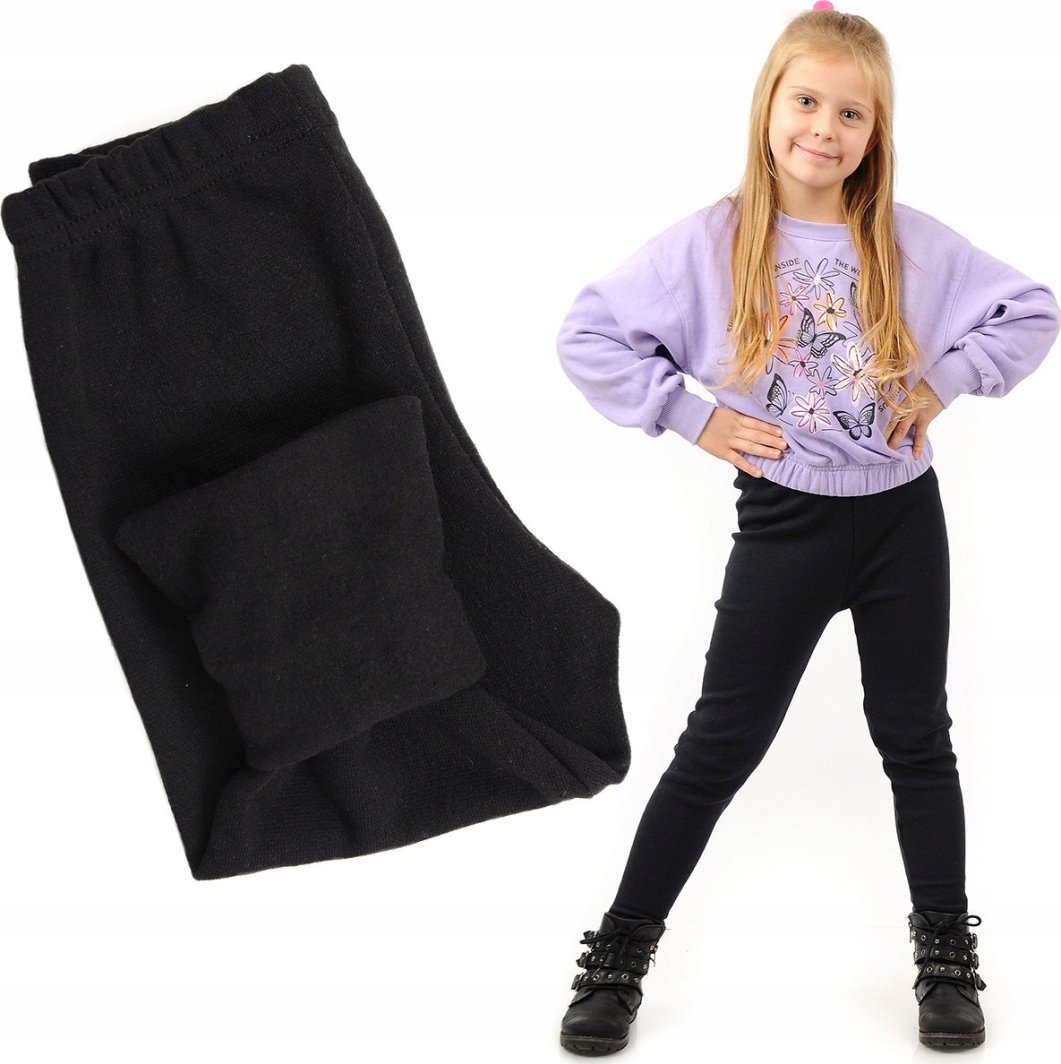 Ocieplane Legginsy dziecięce Polskie bawełniane klasyczne Getry Czarne 152