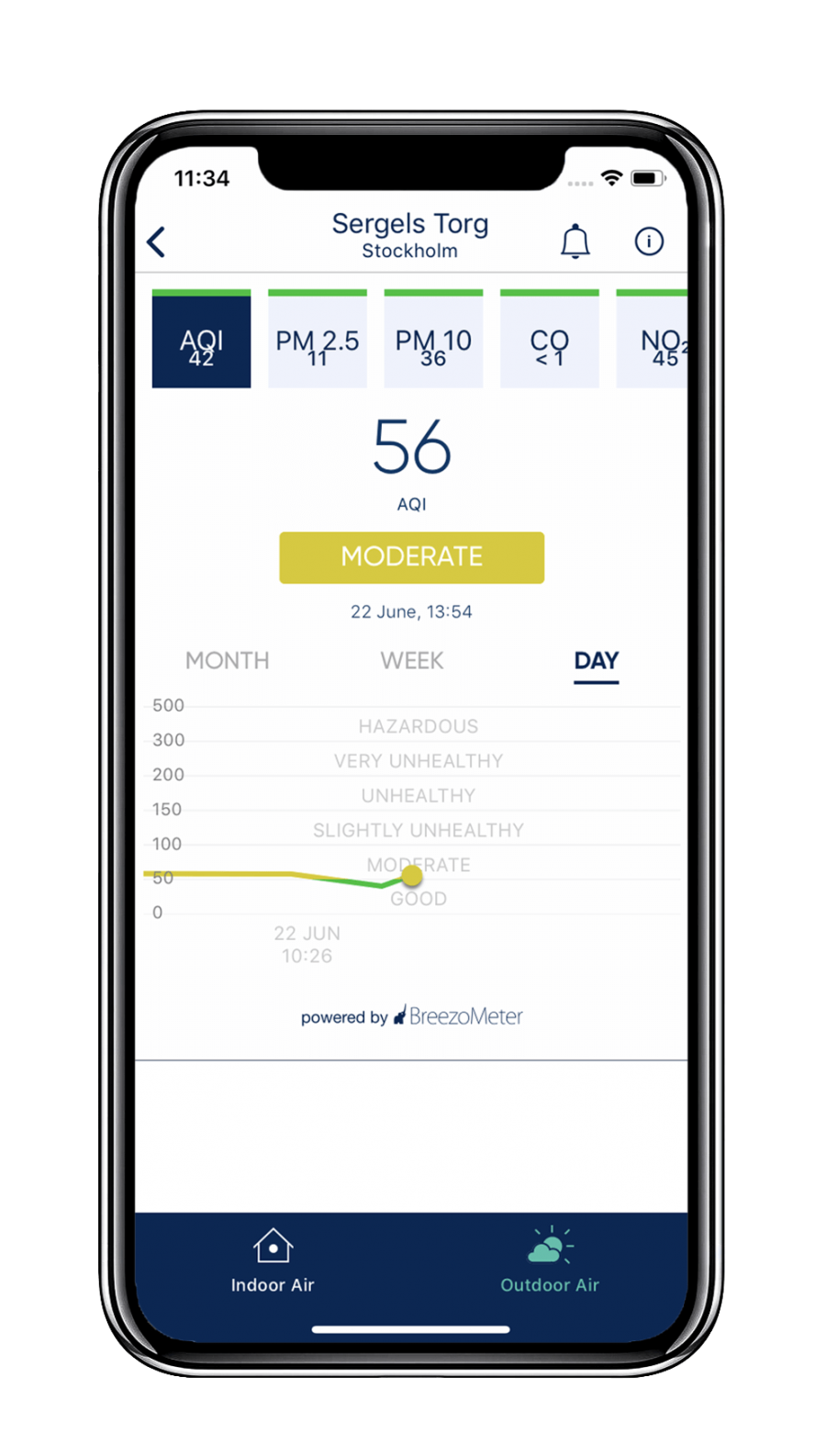 Poprzez monitorowanie jakości powietrza w pomieszczeniach i na zewnątrz za pomocą aplikacji Blueair Friend zyskasz lepszą kontrolę nad wdychanym powietrzem, a także swoim zdrowiem i samopoczuciem. Dowiesz się, kiedy powietrze wokół ciebie będzie zanieczyszczone, a więc kiedy trzeba będzie podjąć działania, aby uniknąć niezdrowego powietrza powodującego alergie, ataki astmy lub inne problemy zdrowotne. Pobierz aplikację ze sklepu App Store lub Google Play.