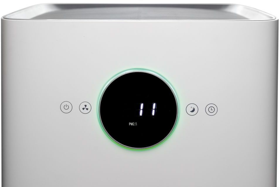 Oczyszczacz powietrza wskazuje aktualną jakość powietrza na wyświetlaczu LED. Inteligentny czujnik laserowy wykrywa i mierzy jakość powietrza w pomieszczeniu. Znaczenie odczytu kolorystycznego: wyświetlając czerwone (zła jakość powietrza), żółte (dobra jakość powietrza), niebieskie (dobra jakość powietrza) lub zielone światło pierścieniowe (doskonała jakość powietrza).