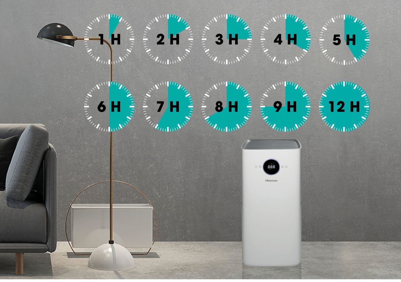 - Oczyszczacz wyłączy się automatycznie w żądanym czasie od 1 do 12 godzin. Możesz wybrać jedną z 10 opcji timera. Oszczędzasz energię i pieniądze.
