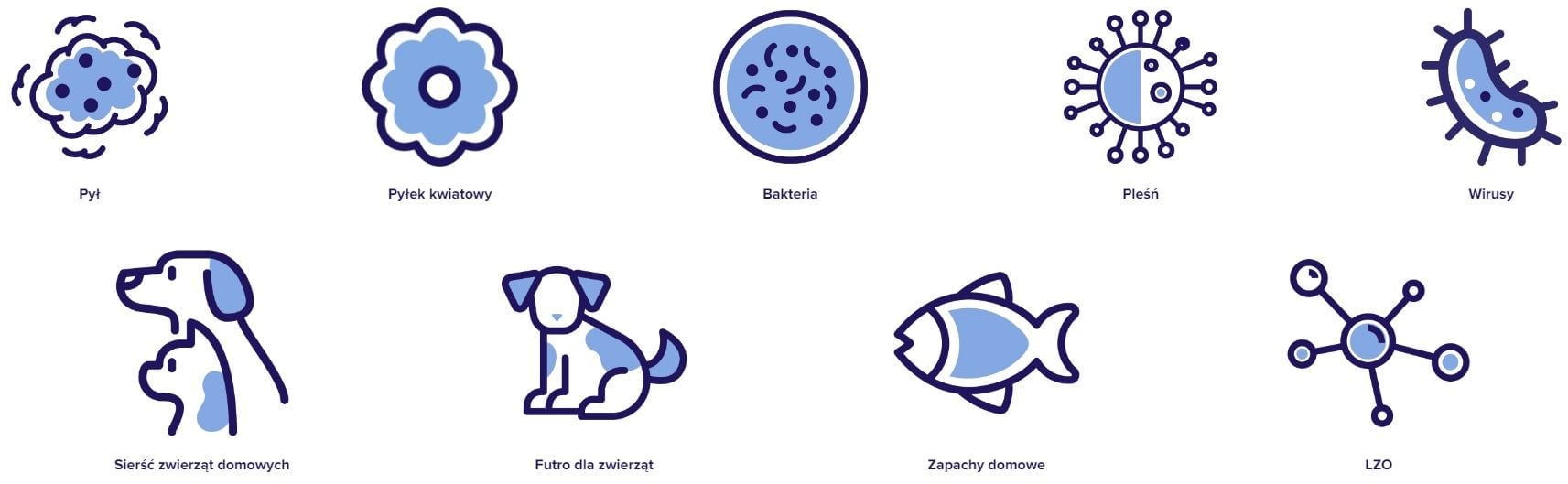 Filtry HEPA (ang. High Efficiency Particulate Air) w oczyszczaczach powietrza z bardzo wysoką skutecznością eliminują najdrobniejsze cząsteczki zanieczyszczeń. To zasługa specjalnych włókien z kompozytu poliestrowo-szklanego, a także dużej powierzchni absorbującej. Tak wyposażone modele sprawdzą się idealnie w domach alergików, astmatyków oraz wszystkich osób o obniżonej odporności na infekcje dróg oddechowych. Filtr HEPA usuwa pyły zawieszone m.in. PM10, PM2,5, PM1, roztocza kurzu, pyłki, grzyby, bakterie, wirusy.