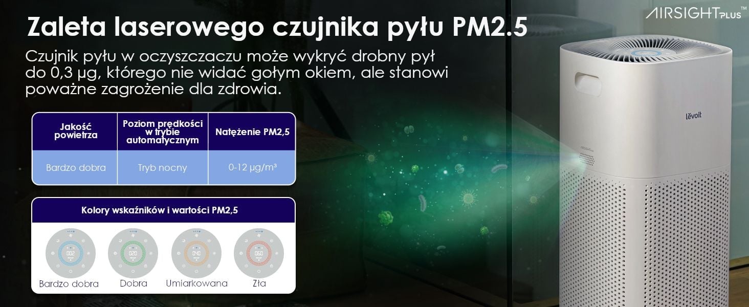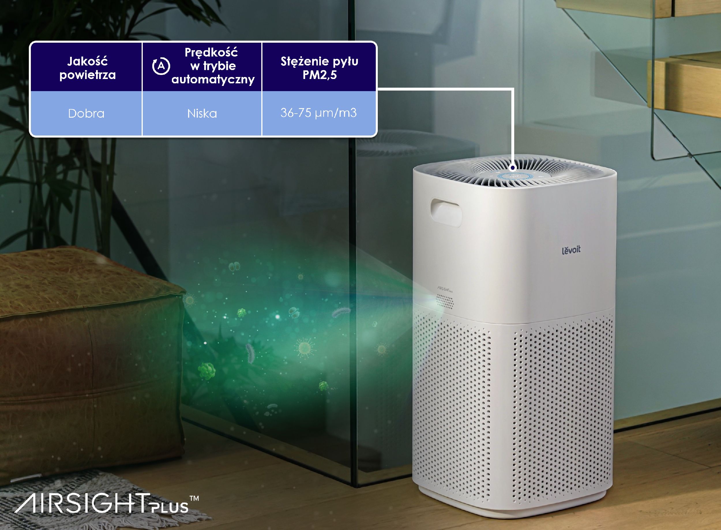 Oczyszczacz powietrza wyposażony w tryb automatyczny samodzielnie dostosowuje intensywność pracy do poziomu zanieczyszczenia powietrza w pomieszczeniu. Czujniki, w które wyposażone jest urządzenie na bieżąco monitorują wskaźniki jakości powietrza i na ich podstawie dostosowują prędkość pracy wentylatora.