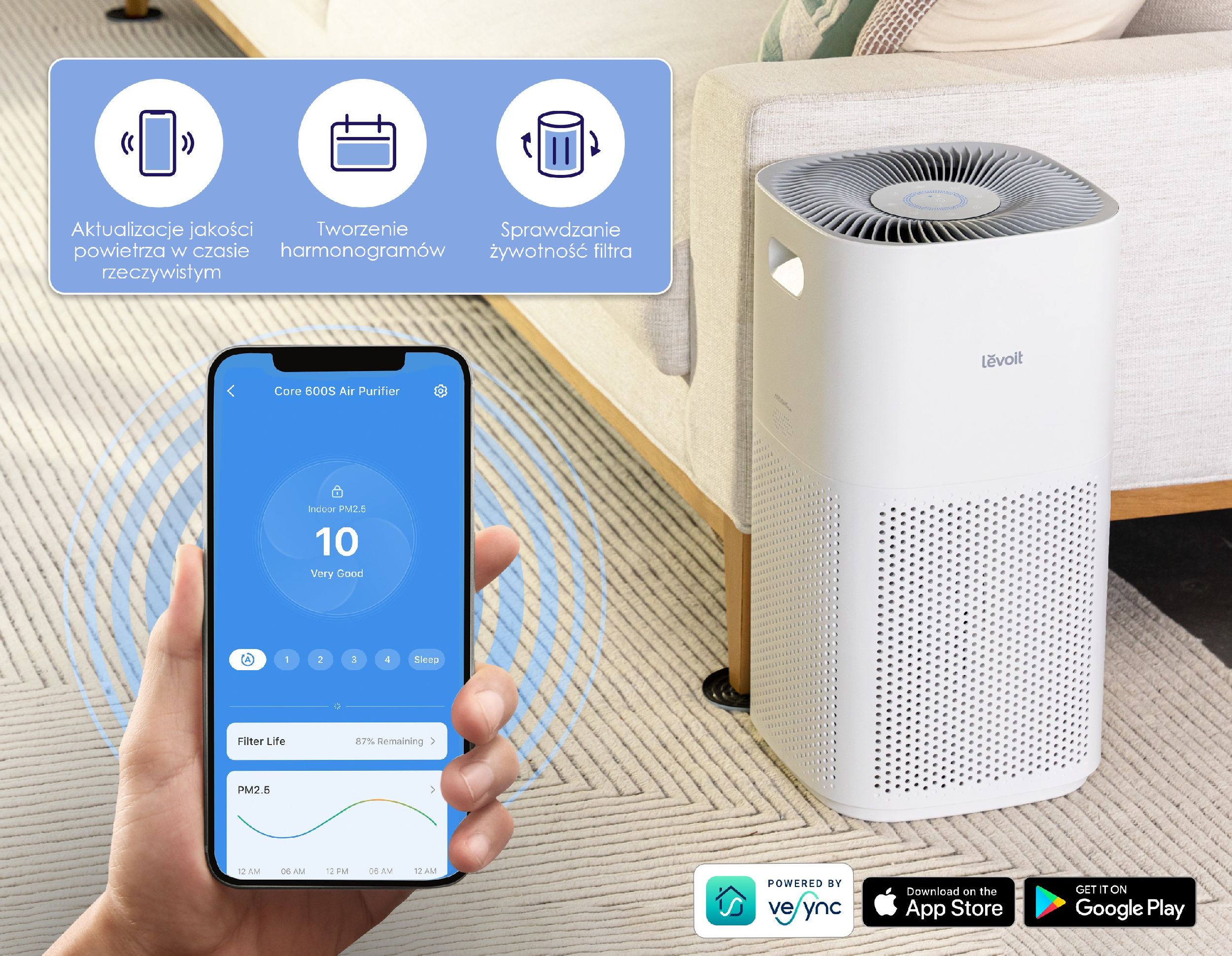 Oczyszczacz powietrza obsługiwany za pomocą aplikacji mobilnej pozwala na jeszcze lepsze korzystanie z jego funkcjonalności. Na swoim smartfonie możemy na bieżąco podglądać jakość powietrza w naszym domu, regulować tryb pracy wentylatora, czy też zdalnie uruchamiać i wyłączać urządzenie. Oczyszczacz powietrza sterowany za pomocą aplikacji mobilnej to świetny wybór dla osób ceniących sobie nowoczesne technologie w swoim domu.