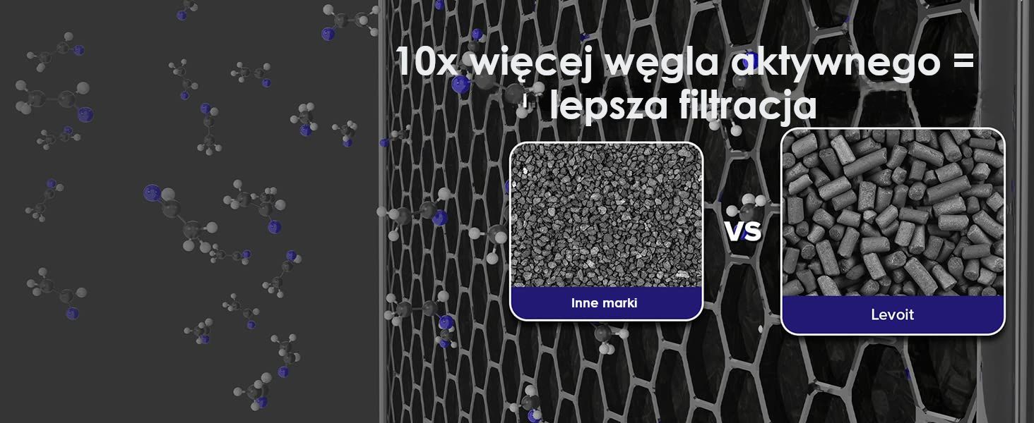 Filtry węglowe stosowane w oczyszczaczach powietrza składają się z granulek węgla aktywnego, które doskonale wiążą szkodliwe cząsteczki. Do ich głównych zadań należy usuwanie zanieczyszczeń gazowych takich jak jak dym papierosowy czy lotne związki organiczne. LZO to substancje niezwykle groźne dla zdrowia, toksyczne, drażniące, rakotwórcze, które mogą dostać się do pomieszczenia przez otwarte okna, czy wentylację lub być emitowane w zamkniętych pomieszczeniach z farb i klejów (np. formaldehyd) czy elementów wyposażenia wnętrz. Filtr węglowy neutralizuje także przykre zapachy wyczuwalne nawet w niewielkich stężeniach. Urządzenia z filtrem węglowym znajdą zastosowanie nie tylko w mieszkaniach, czy biurach, ale również w zakładach przemysłowych.