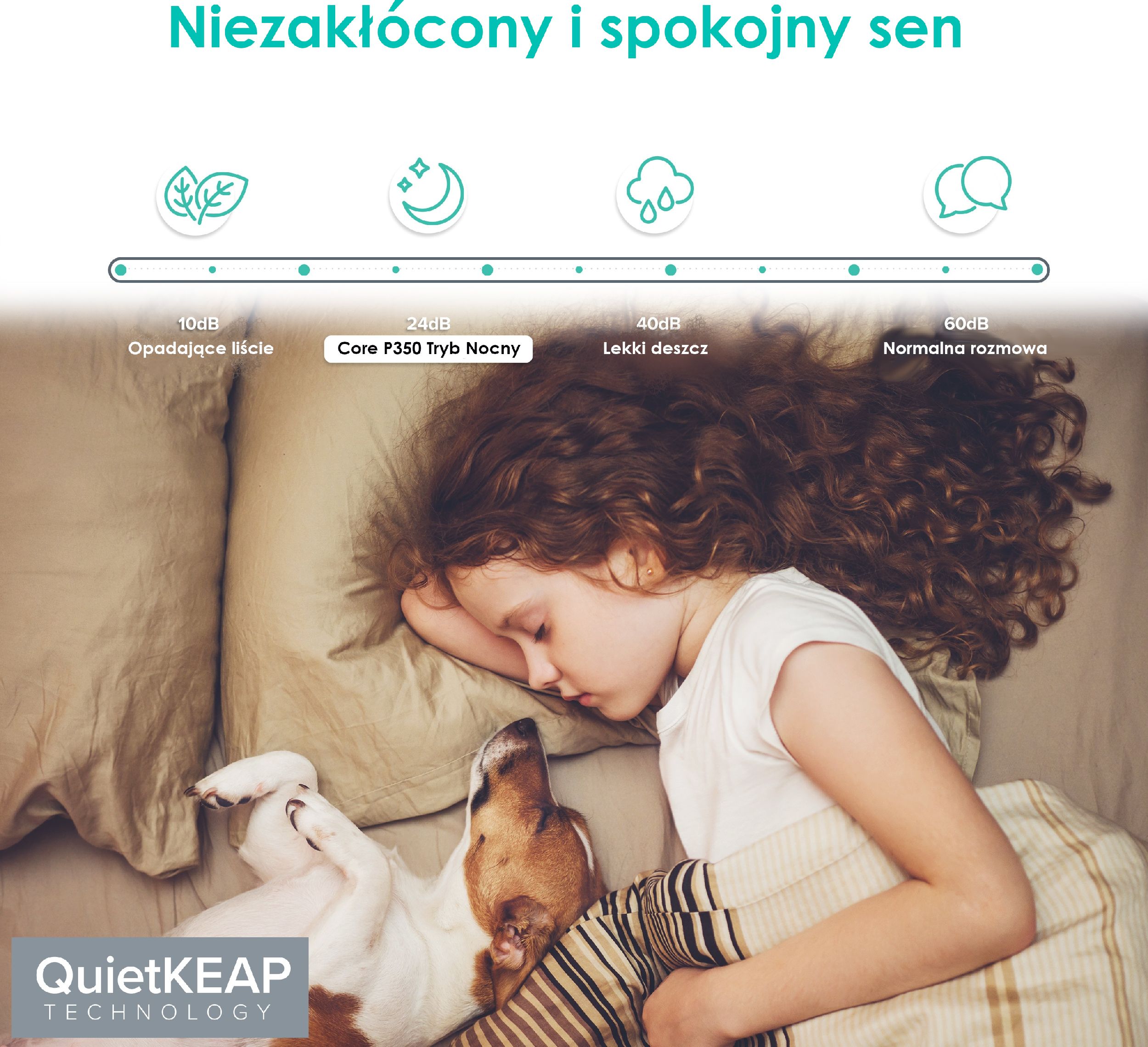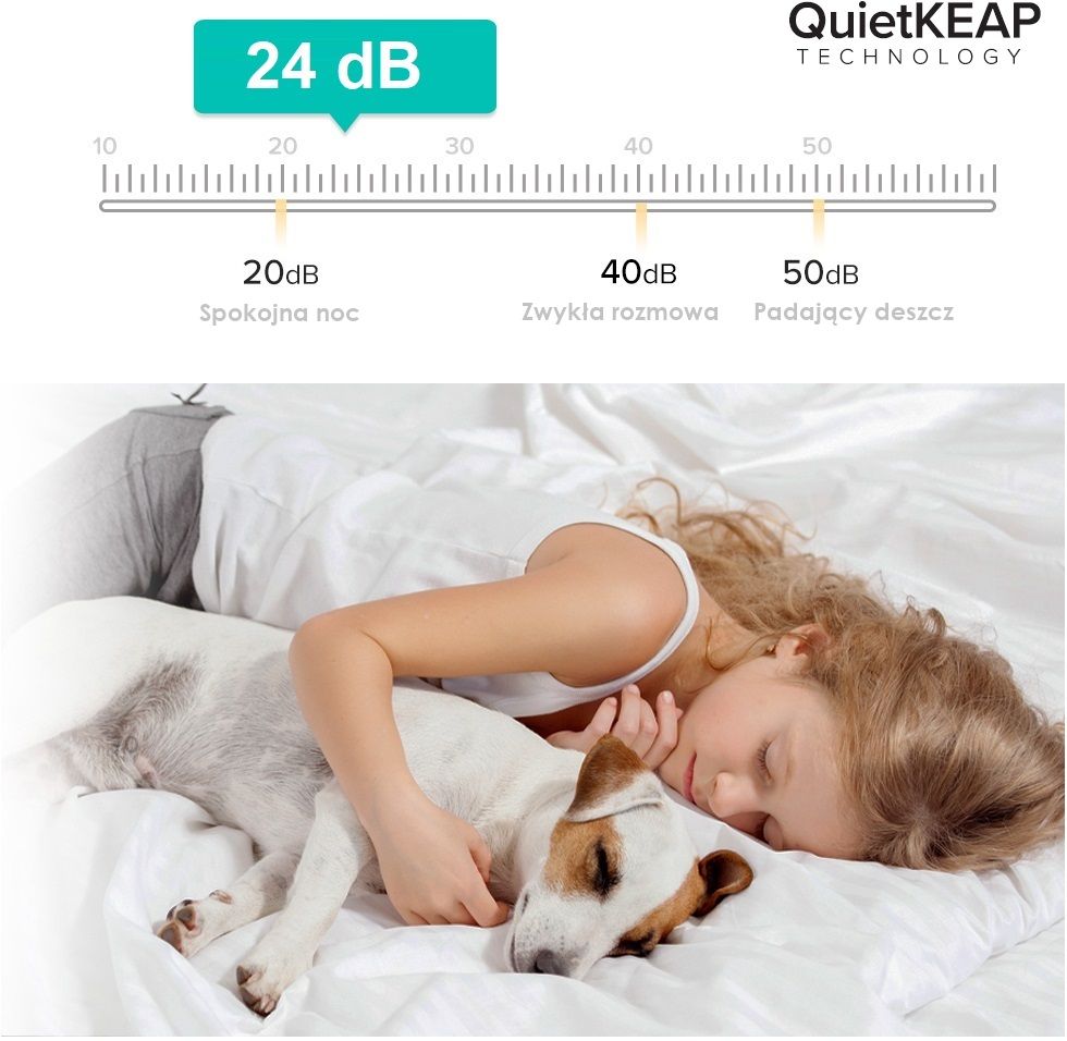 - niezwykle cichy, odpowiedni nawet do sypialni czy pokoju dziecięcego – tylko 24dB w trybie nocnym, dzięki technologii QuietKEAP™