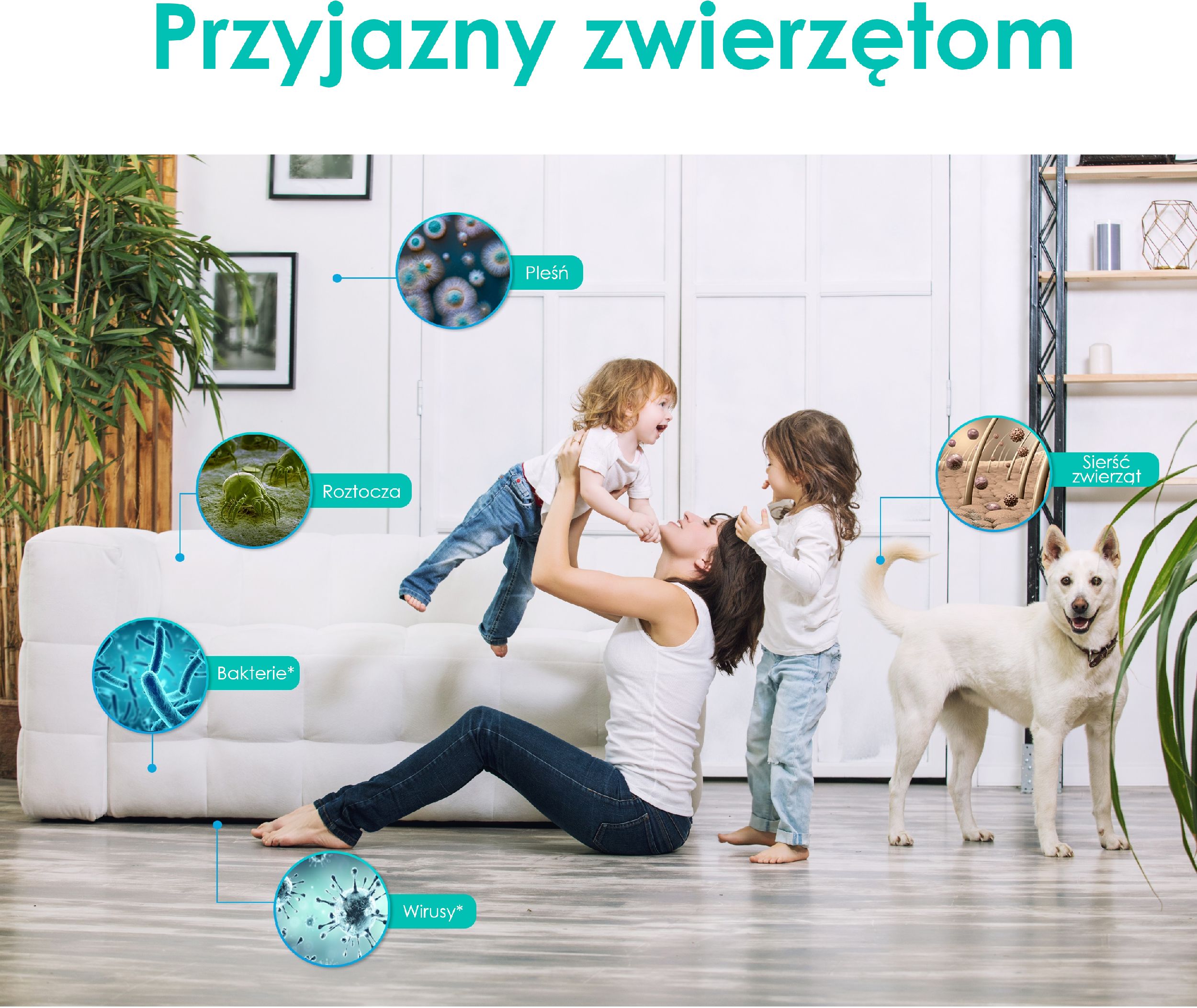 - Oczyszczacz stworzony dla Ciebie i Twoich zwierząt, zdrowe i czyste powietrze dla wszystkich domowników