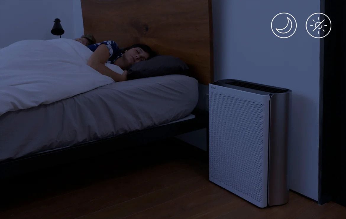 Oczyszczacz powietrza posiadający funkcję trybu nocnego zmniejsza tryb pracy wentylatora do minimum, dzięki czemu redukuje swój poziom hałasu. Dodatkowo podświetlenie przycisków i wskaźnik jakości powietrza zostają przyciemnione. Funkcja ta zapewnia domownikom jednocześnie spokojny sen oraz czyste powietrze w pomieszczeniu.