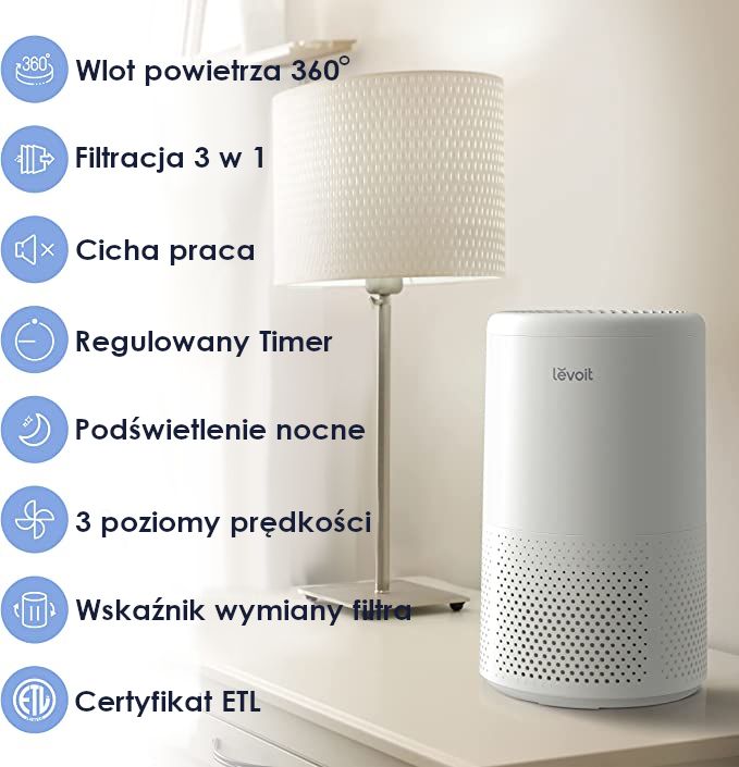 - idealny nawet do sypialni czy pokoju dziecięcego – 26 dB w trybie nocnym