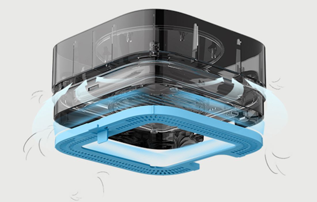 Urządzenie rewelacyjnie sprawdzi się w małych i średnich mieszkaniach. Jest wyjątkowo lekkie i niewielkie. Możesz więc postawić je wszędzie, gdzie chcesz lub przestawiać z miejsca na miejsce, jeśli zajdzie taka potrzeba. Mały rozmiar pochłaniacza łączy się z jego niesamowitą efektywnością - z powodzeniem wykorzystasz go w pomieszczeniach o powierzchni do 30m2. Tak duży zasięg działania Air Magicube jest możliwy dzięki innowacyjnemu designowi zapewniającemu odpowiedni przepływ powietrza.