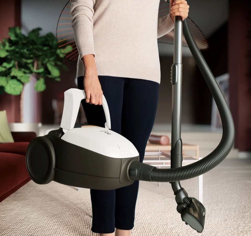 Doskonale wyważony uchwyt daje możliwość wygodnego podnoszenia i przenoszenia odkurzacza. Uchwyt został umieszczony na środku, aby ciężar rozkładał się równomiernie. Smukła konstrukcja sprawia, że odkurzacz jest bardziej zwrotny i łatwo nim manewrować.