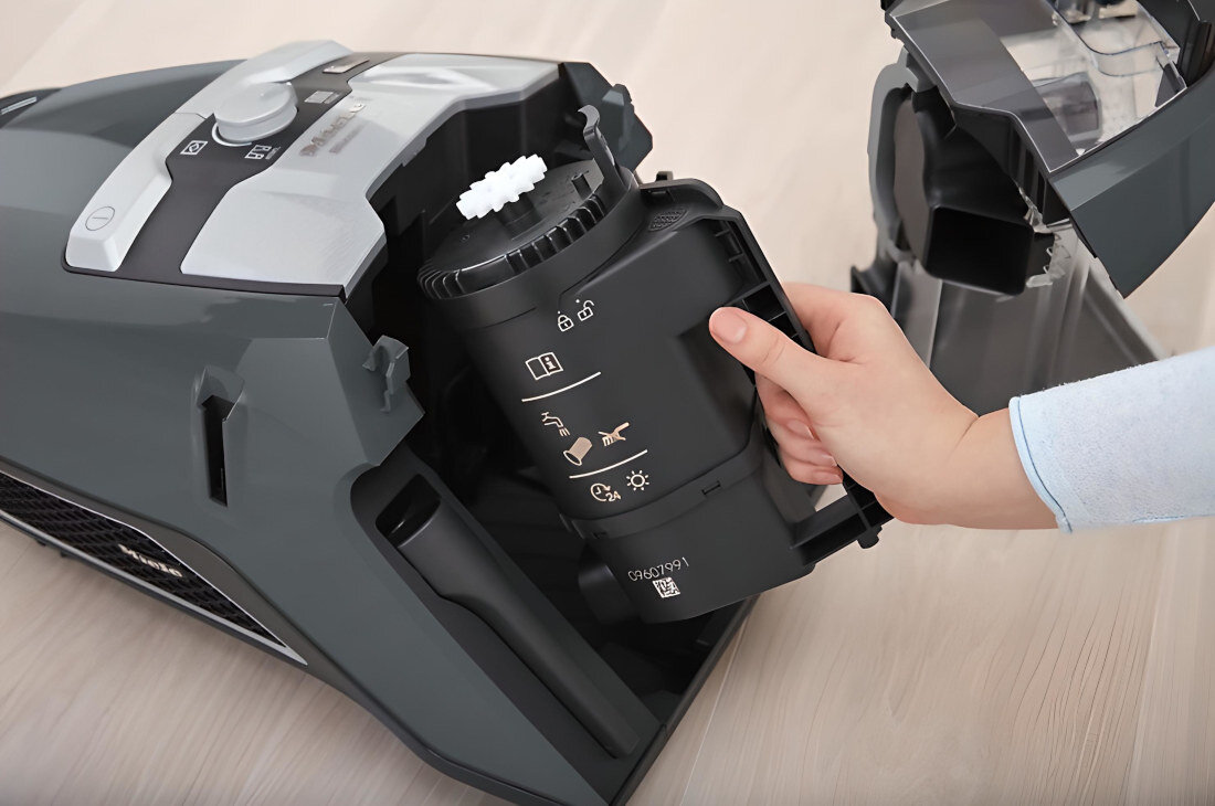 Zastosowanie dwóch oddzielnych pojemników na zebrane nieczystości pozwala na opróżnianie ich bez ryzyka wzbijania się chmury kurzu. Przestrzeń jest podzielona na dwie sekcje, z których jedna gromadzi drobne, łatwo rozsypujące się zabrudzenia, a druga większe cząstki. Dzięki temu higienicznemu rozwiązaniu użytkownik nie musi powtórnie usuwać tego samego pyłu z podłogi.
