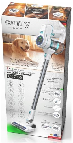 Odkurzacz Camry CR 7075 wyróżnia się nowoczesnym designem oraz zaawansowanymi funkcjami, które ułatwiają codzienne sprzątanie. Wyposażony w dwa akumulatory litowo-jonowe, zapewnia długi czas pracy oraz skuteczne usuwanie zanieczyszczeń.