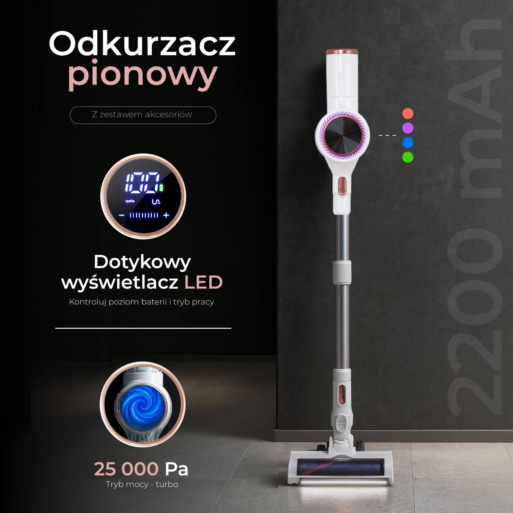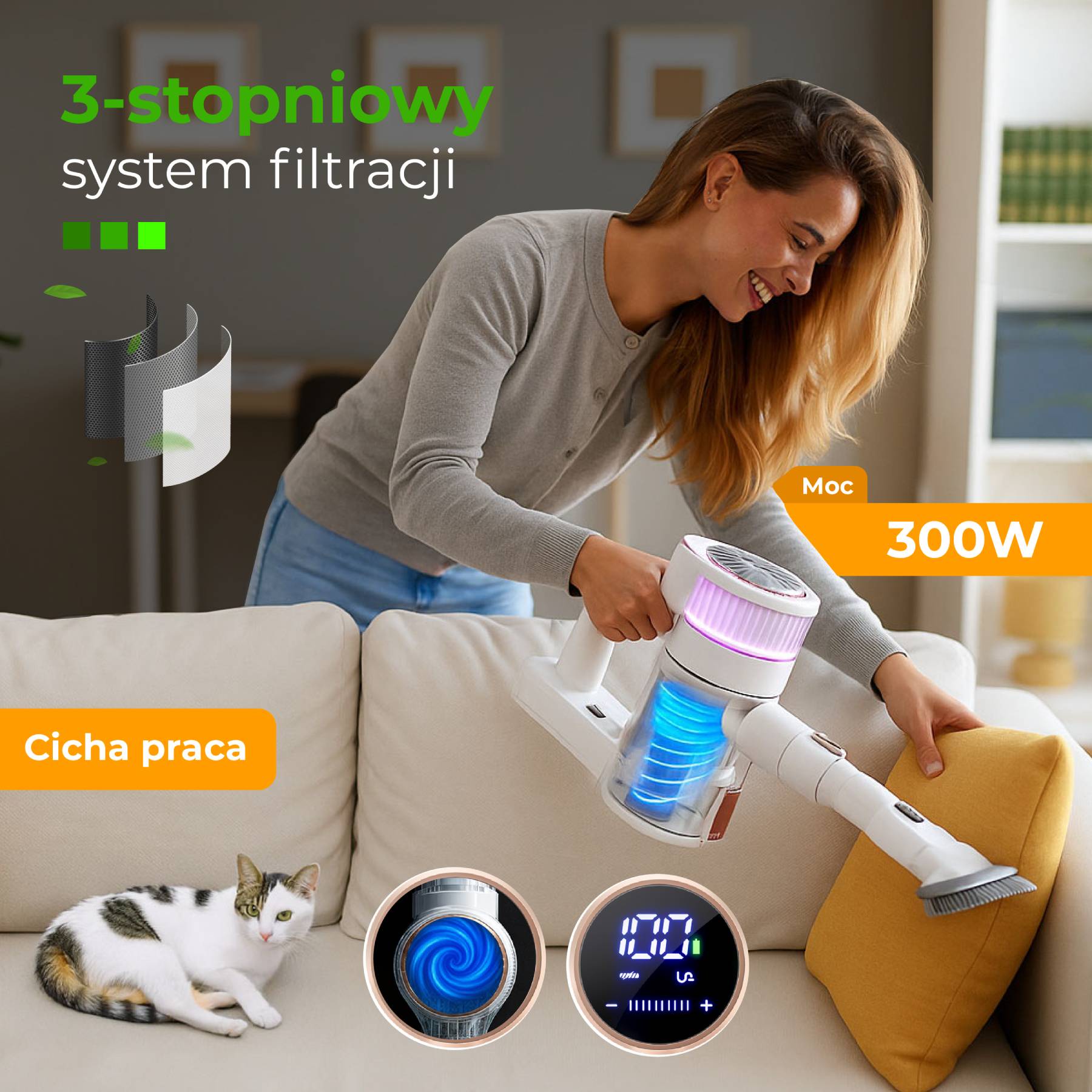 Poznaj nowy poziom komfortu i czystości z Adler AD 7079 - bezprzewodowym odkurzaczem, stworzonym z myślą o wydajnym sprzątaniu mieszkań o powierzchni do 70 m2. To połączenie nowoczesnego designu, mocy ssania do 25 000 Pa, oraz zaawansowanej technologii filtracji. Pracuje cicho, skutecznie i bez plączących się kabli.
