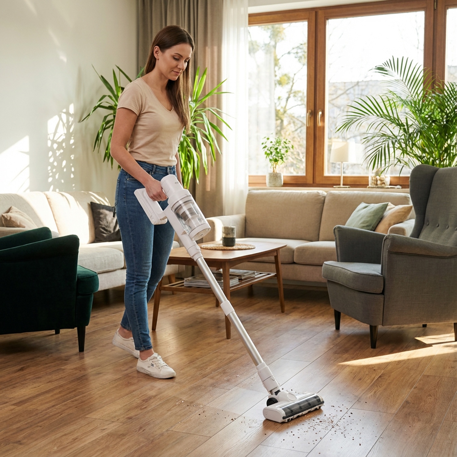 Odkurzacz oferuje trzy poziomy mocy, co pozwala na precyzyjne dopasowanie siły ssania do stopnia zabrudzenia: