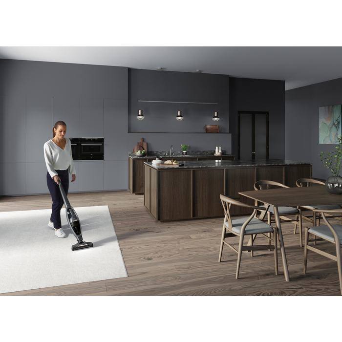 Smukła i płaska konstrukcja QX8.2 z ergonomiczną częścią dolną zapewnia szczególnie łatwą manewrowość i wysoki komfort obsługi. Jednocześnie łatwo wyjmowany odkurzacz ręczny umożliwia wygodne sprzątanie nawet w trudno dostępnych miejscach. Zintegrowana szczotka do mebli i teleskopowa ssawka szczelinowa umożliwiają szybkie i łatwe czyszczenie trudno dostępnych miejsc. Dzięki praktycznemu przechowywaniu w urządzeniu są zawsze szybko pod ręką. Elektryczna szczotka ssąca do wyjmowanego odkurzacza ręcznego dokładnie usuwa sierść zwierząt i włókna z mebli tapicerowanych. Dzięki funkcji QuickClean włosy i kłaczki można łatwo usunąć z rolki szczotki.
