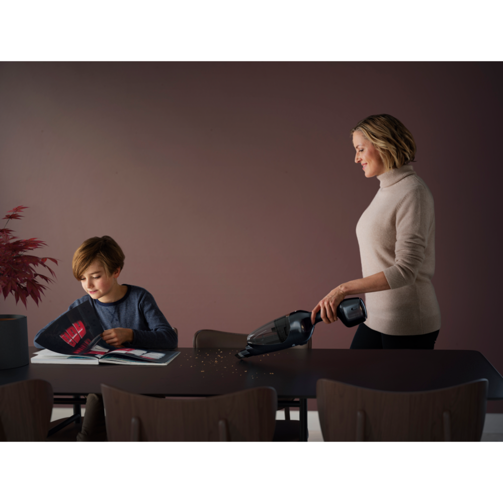 Specjalnie zaprojektowana stacja ładująca pozawala na płynne i wygodne przejście z ładowania do użytkowania. Może być ustawiona w dowolnym miejscu bez konieczności montowania do ściany. Po prostu chwyć odkurzacz i rozpocznij sprzątanie.